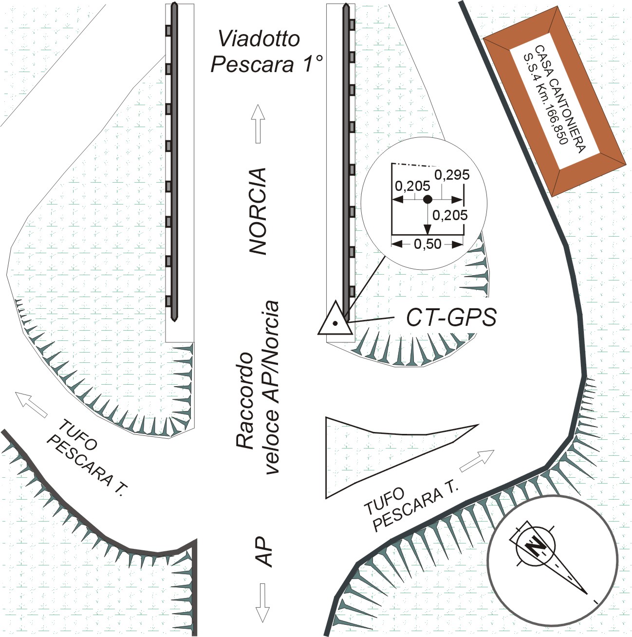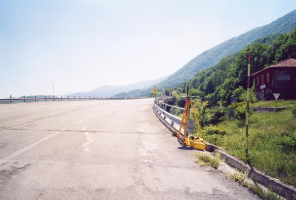 | materializzazione | Centrino del tipo GPS C fissato sul cordolo in cemento, del viadotto Pescara I. Lato destro direzione Norcia |