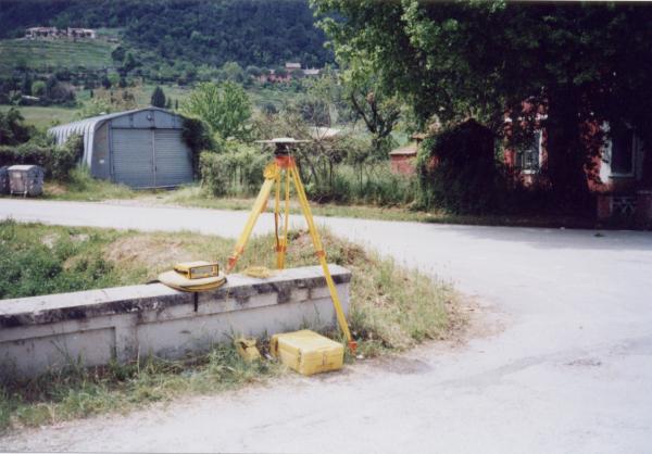 Centrino in acciaio inox del tipo "GPS da livellazione" fissato sulla spalletta a monte del ponticello più vecchio.