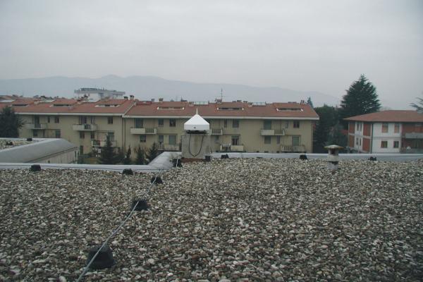 Stazione permanente costituita da pilastrino in muratura a sezione quadrata eretto sull' area di copertura più alta dell'edificio.