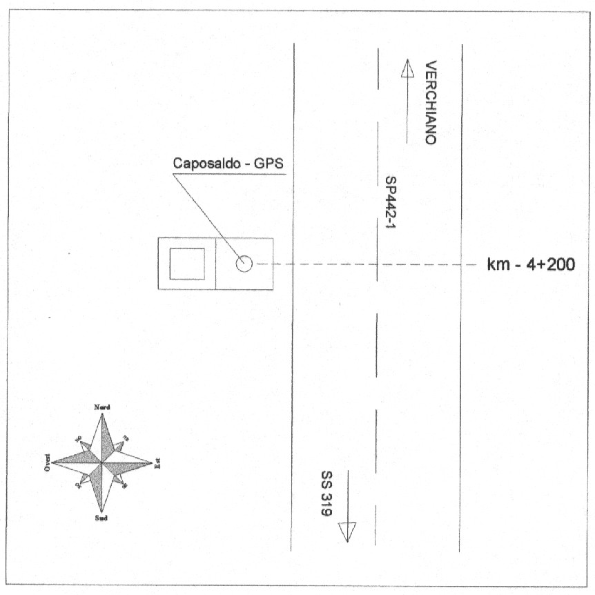 | materializzazione | Chiodo topografico con rondella in ottone con scritta "Provincia di Perugia", sul basamento in calcestruzzo delle dimensioni di cm.100×100. |