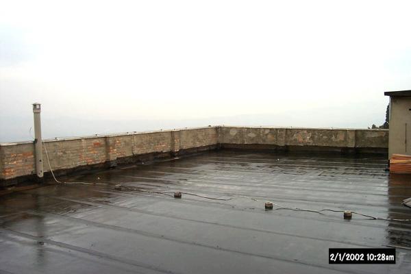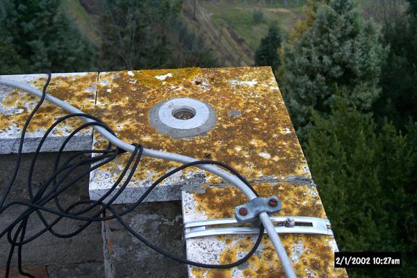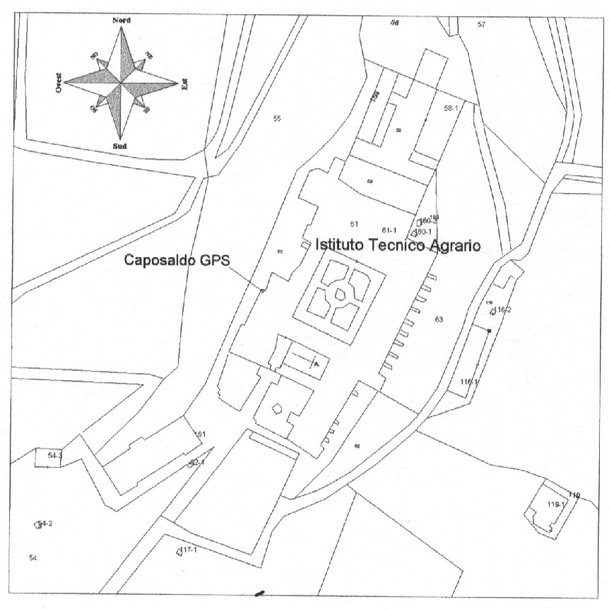 Centrino GPS in acciaio del tipo autocentrante filettato, posto sull'incrocio di due parapetti della copertura piana del reparto di chimica dell'Istituto.