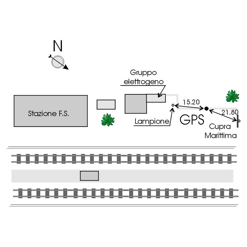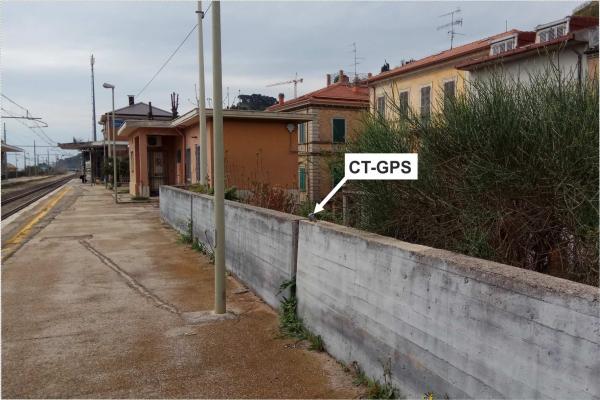 | materializzazione | Centrino in acciaio inox del tipo "GPS da livellazione" infisso nella sommità del parapetto del marciapiede del binario 1, circa 20 metri a nord della cabina del gruppo elettrogeno della stazione feroviaria. |