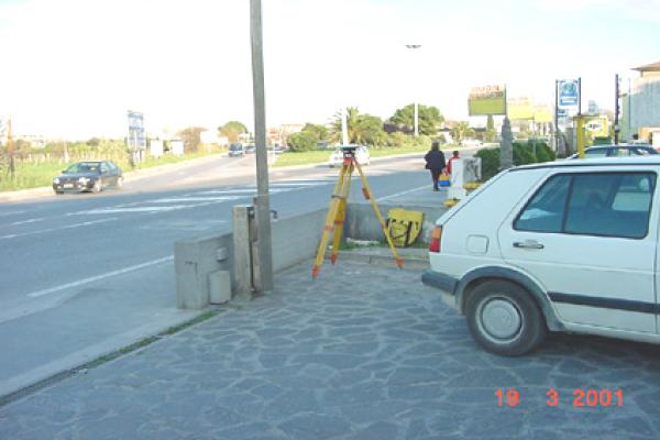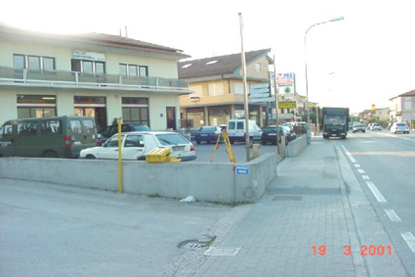Centrino in acciaio inox del tipo "GPS da livellazione" infisso in prossimità dell'angolo sinistro, guardando la facciata, dell'area antistante il negozio.