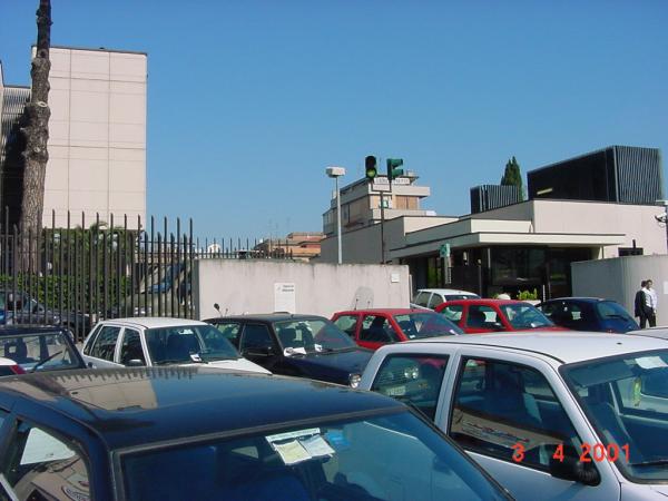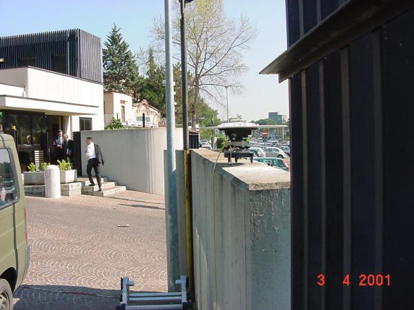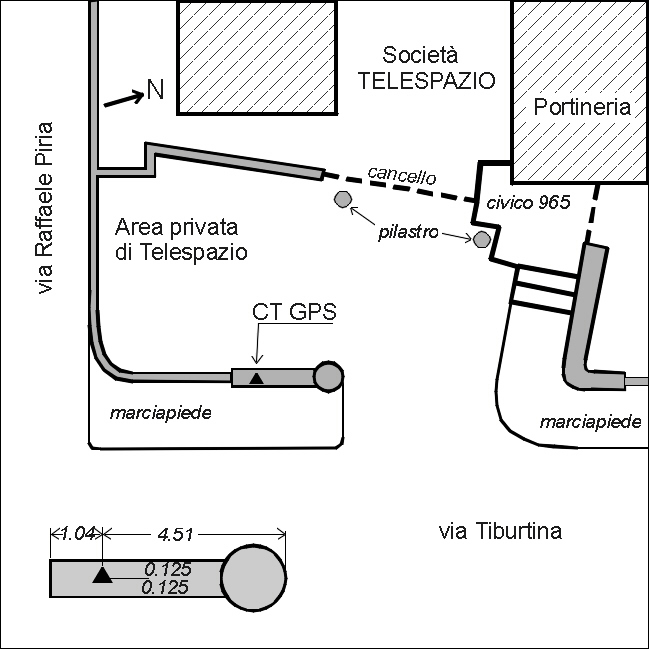 | materializzazione | Centrino in acciaio inox del tipo "GPS C" infisso alla sommità del muro in calcestruzzo che separa il marciapiede dal parcheggio antistante l'ingresso della sede della Società "Telespazio". |