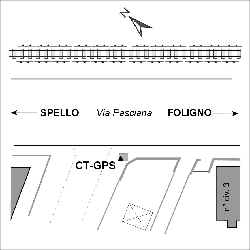 | materializzazione | Centrino in acciaio inox del tipo "GPS da livellazione" infisso in prossimità dello spigolo ovest del tombino per l'irrigazione ubicato fra il fabbricato al n.civ.3 e quello al n.civ.9 di via Pasciana. |