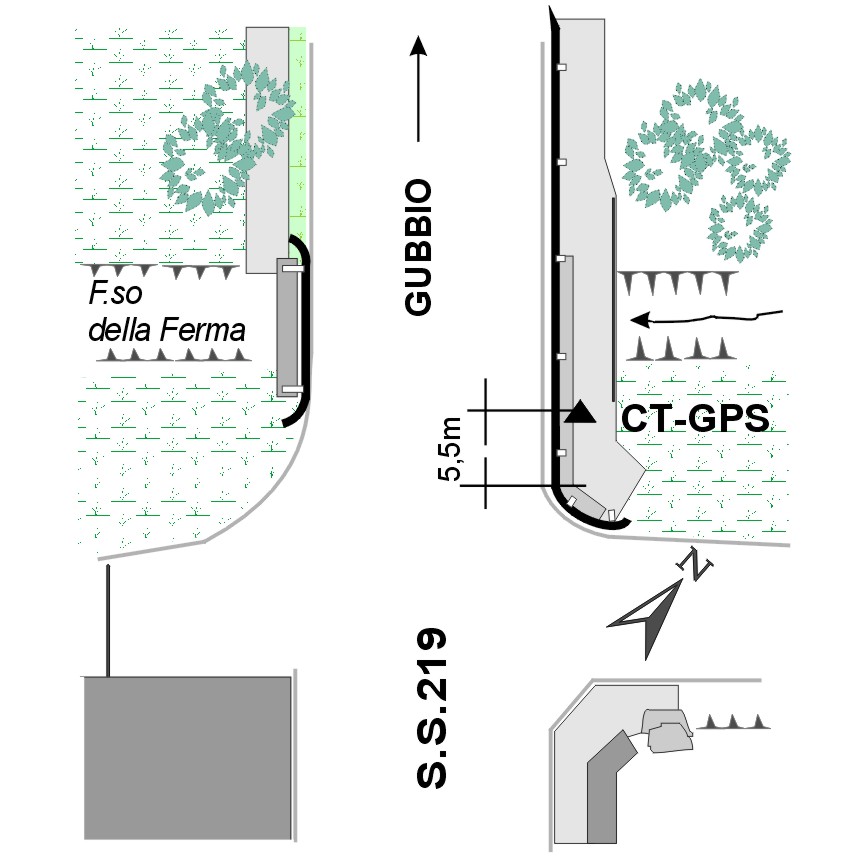 | materializzazione | Centribno in acciaio inox del tipo "GPS da livellazione" infisso nel marciapiede del lato a monte, spalla sinistra, del ponte sul Fosso della Ferma. |