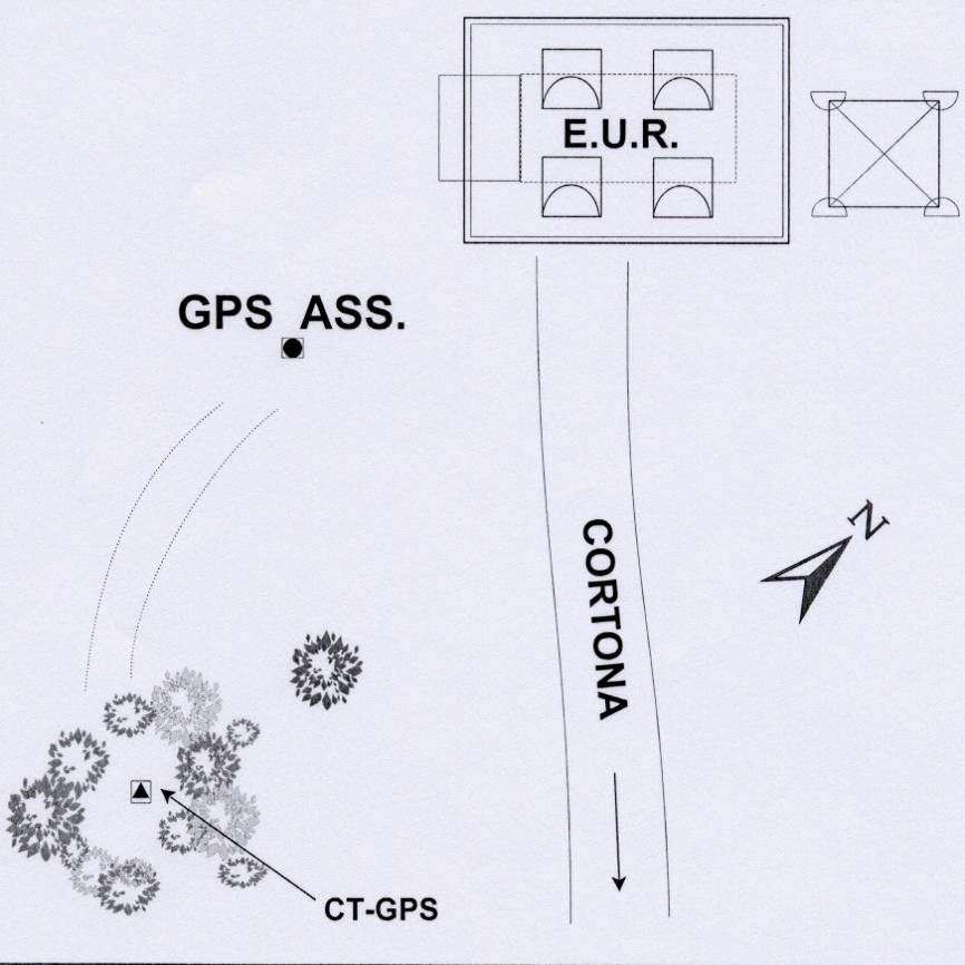 Centrino in acciaio inox del tipo "GPS D" infisso nella sommità del pilastrino in calcestruzzo esistente a circa 25 metri dallo spigolo sud-ovest dell'impianto della Telecom S.p.A.