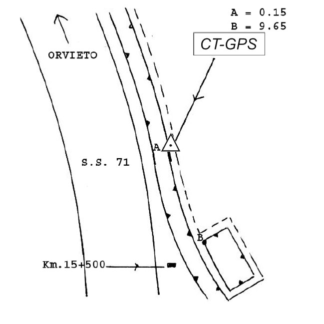 | materializzazione | Centrino metallico infisso sul muro di sostegno in calcestruzzo a monte della S.S. 71 in corrispondenza del Km 15+500, nei pressi del bivio per l'Osteria di Biagio. |