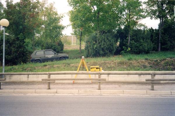 Centrino in acciaio inox del tipo "GPS da livellazione" infisso nella sommita del muro a retta esistente a destra della piccola cappella della "Madonna di Tre Miglia".