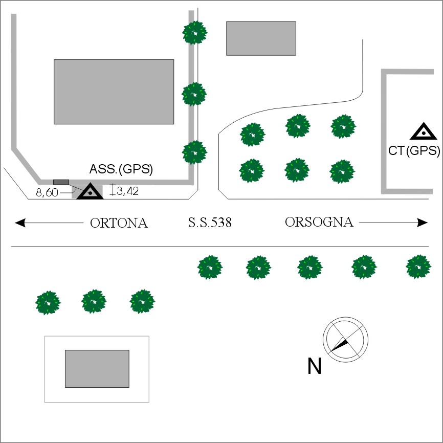 | materializzazione | Centrino in acciaio inox del tipo "GPS D" fissato sulla soletta in calcestruzzo ubicata al lato destro, procedendo in direzione di Ortona, della S.S.38, nei pressi del CT-GPS. |