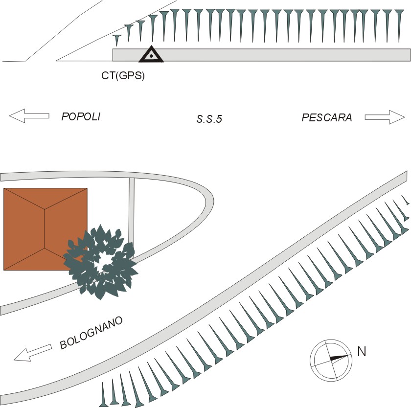 | materializzazione | Centrino in acciaio inox del tipo "GPS da livellazione" infisso alla sommità del muro di sostegno ubicato al km 194,700, in corrispondenza del bivio per Bolognano. |