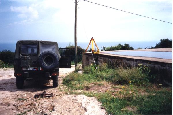 Centrino del tipo "GPS D" infisso nella soletta di copertura in cemento armato, in prossimità dello spigolo nord-est, del serbatoio idrico posto alle pendici nord-est del Monte Nai.