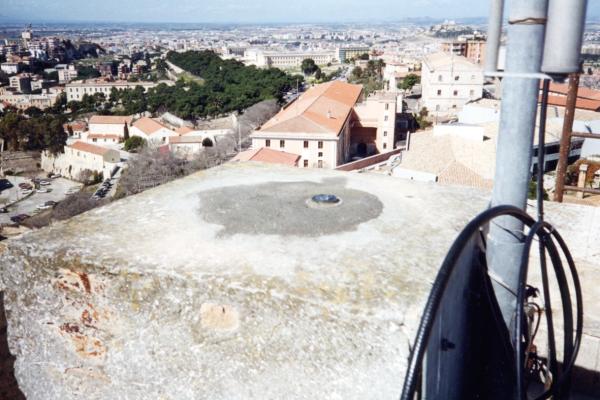 | materializzazione | Centrino di tipo "GPS B" fissato su preesistente centrino IGM del tipo di FC cementato (non in asse) su un pilastrino in muratura sopra alla guardiola alla sommità della torre di San Pancrazio nel centro storico di Cagliari. Il centrino materializza l'asse della guardiola e coincide con il fuori centro del vertice di I ordine 234008. |