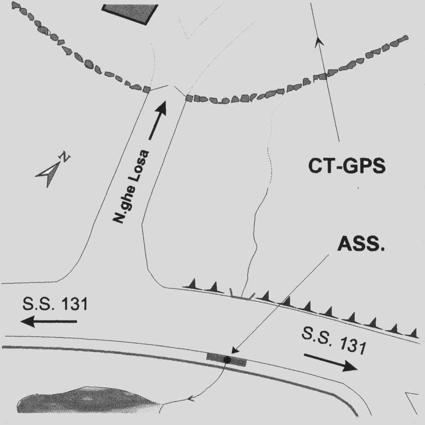Centrino del tipo "GPS D" infisso nella sommità della spalla a valle del ponticello in prossimità della strada d' accesso al Nuraghe Losa.