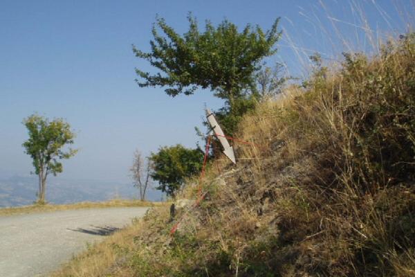 | Materializzazione | Centrino metallico infisso su roccia affiorante presso il bordo strada destro provenendo da Venano. |