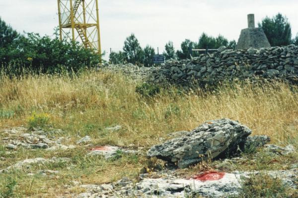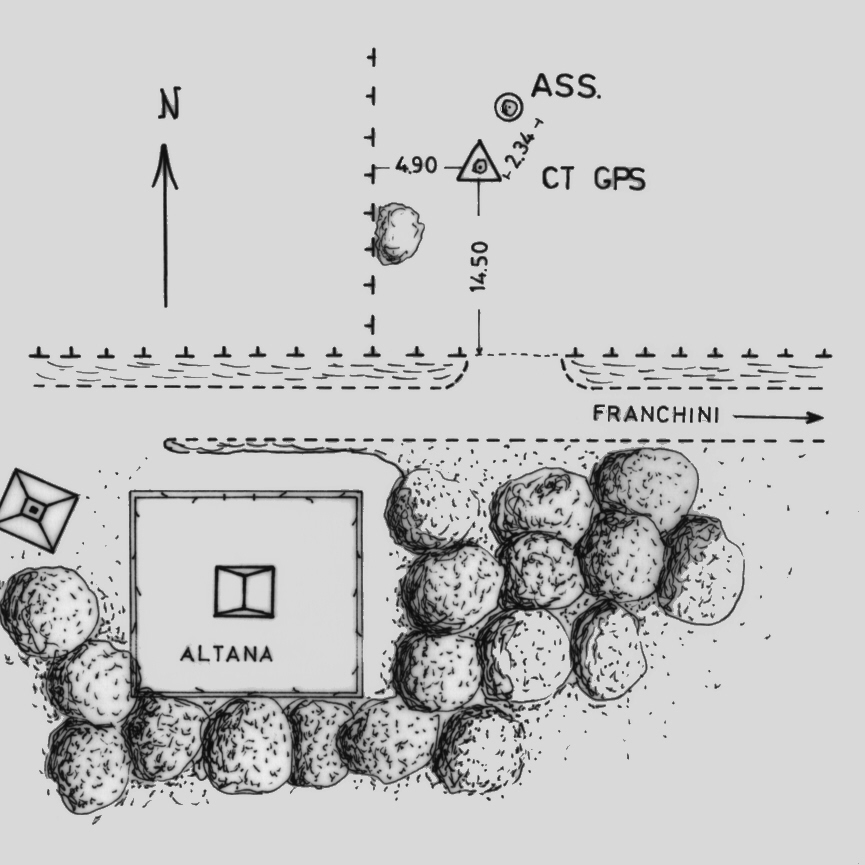 | materializzazione | Centrino di tipo "GPS D" fissato su roccia affiorante, in un campo adibito a pascolo, nei pressi di un'altana di avvistamento incendi. |