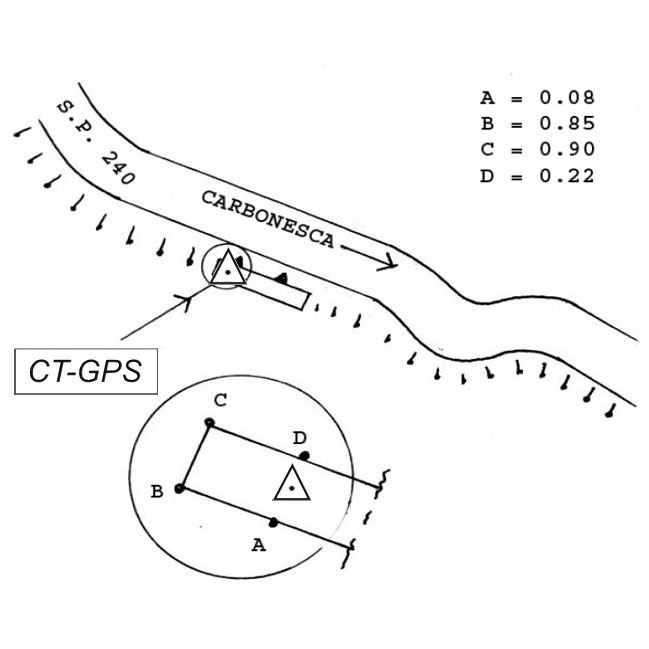 Centrino metallico infisso sul lato nord della sommità del muro di sostegno in calcestruzzo della strada di accesso a Casanova.