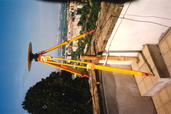 | materializzazione | Centrino GPS EUREF fissato sopra un rialzo in cemento presso lo spigolo nord – est della terrazza di copertura dell'Osservatorio Astronomico di Roma – Monte Mario. |