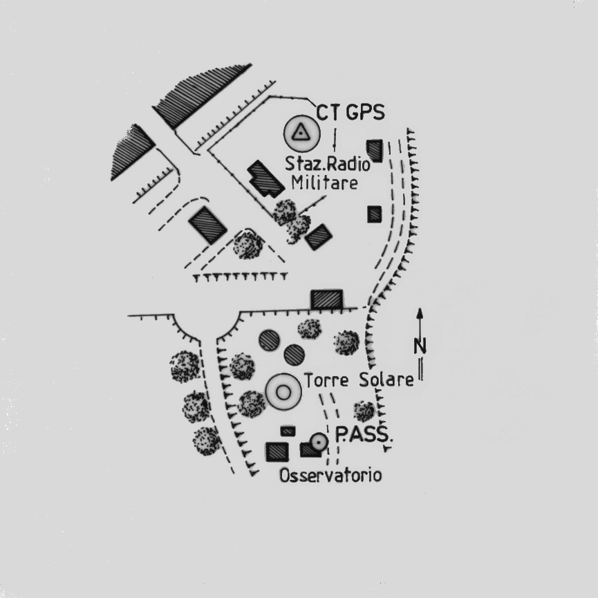 | materializzazione | Centrino del tipo "GPS D" fissato sopra un rialzo in cemento presso lo spigolo nord – est della terrazza di copertura dell'Osservatorio Astronomico di Roma – Monte Mario. |