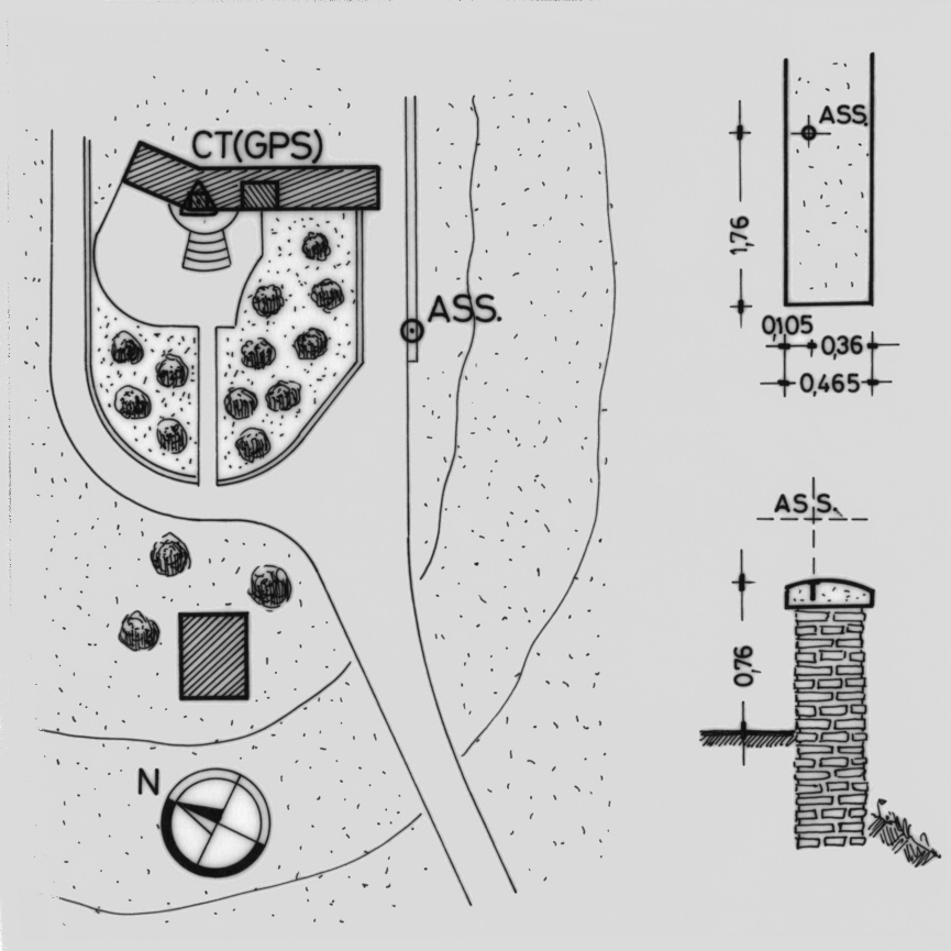 | materializzazione | Centrino del tipo "GPS D" fissato alla sommità di un muro di contenimento in muratura situato a sud dell'Azienda Agricola "Piero Tardella". |
