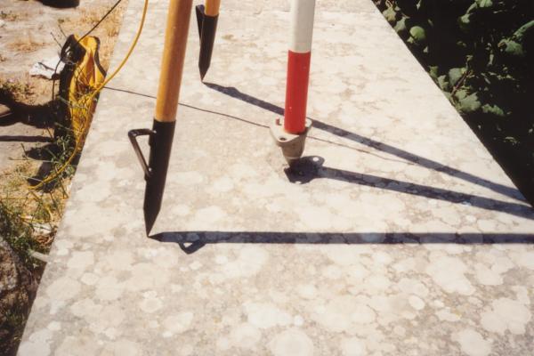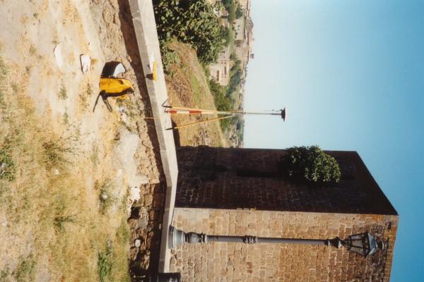 | materializzazione | Gambo in acciaio inox del centrino del tipo "GPS D" fissato sul muro di sostegno del complesso religioso, nei pressi dello spigolo sud. |