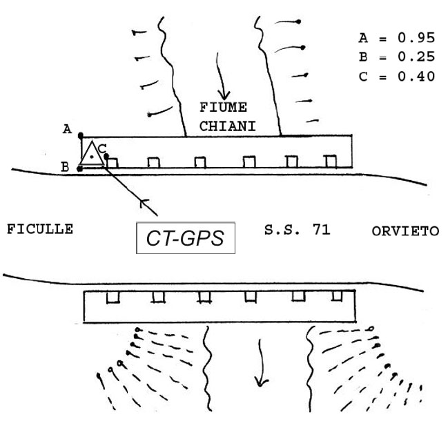| materializzazione | Centrino metallico infisso sullo spigolo nord, spalla destra, in calcestruzzo, del ponte sul fiume Chiani, della S.S. 71, in località Ciconia, al Km 35+400. |