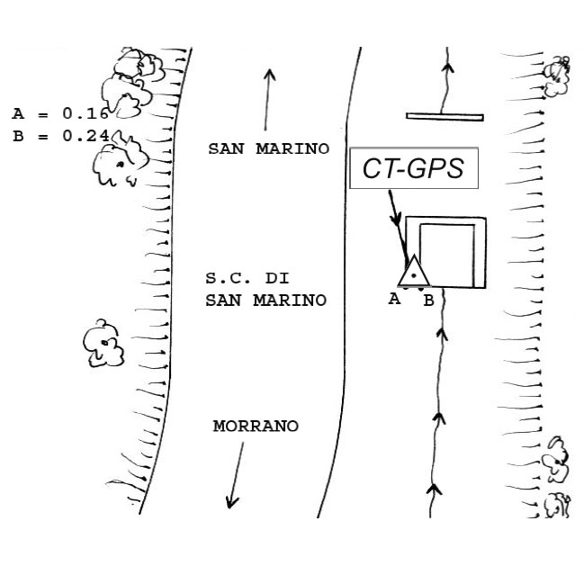 | materializzazione | Centrino metallico infisso sullo spigolo sud-ovest del cordolo del tombino in calcestruzzo della strada comunale di San Marino. |