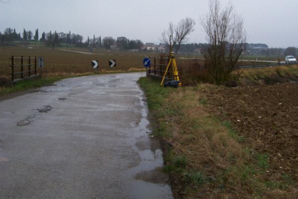 Centrino metallico infisso sullo spigolo sud – est del cordolo in calcestruzzo del tombino della Strada Comunale di Bagnaia.