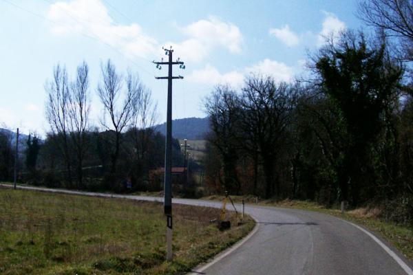 Centrino metallico infisso sullo spigolo sud-est del tombino in calcestruzzo della strada di Fontana, in località Petroso, 500 metri prima del bivio per Colle Baldo-Castiglion Fosco, provenendo da Fontana.
