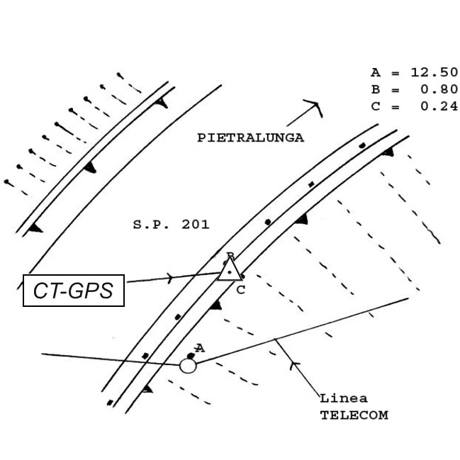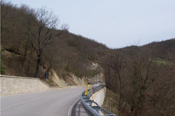 Centrino metallico infisso sulla sommità del muro di sostegno in calcestruzzo a valle della S.P. 201 all'altezza del Km 8+650, in località Molino Carpini.