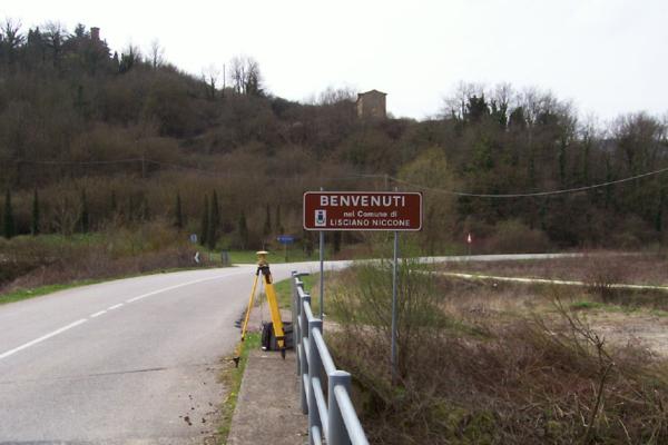| materializzazione | Centrino metallico infisso sul cordolo in calcestruzzo del ponte sul torrente Niccone. |