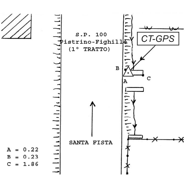 | Materializzazione | Centrino metallico infisso sullo spigolo nord-ovest del tombino in prossimità dell'accesso campestre, in località S. Antonio. |