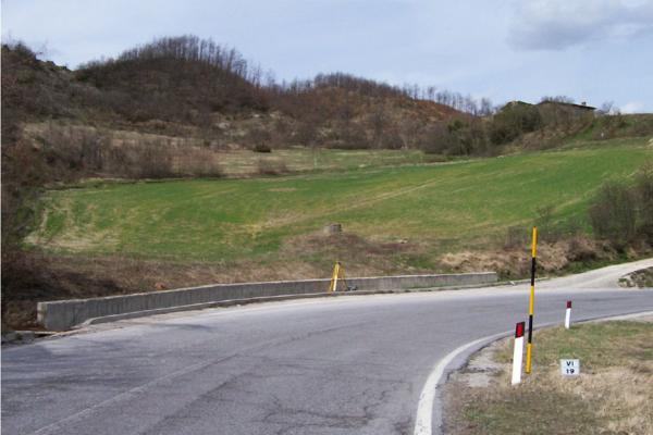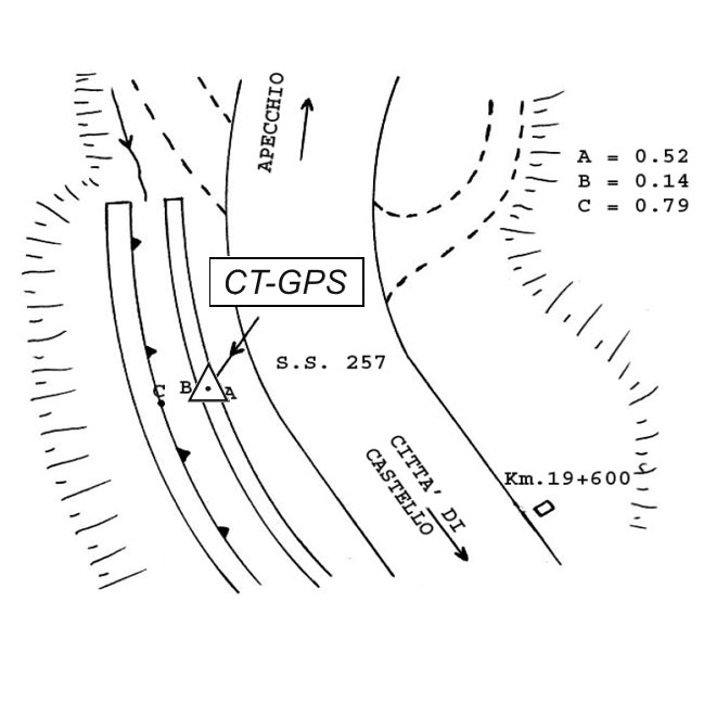 | Materializzazione | Centrino metallico infisso sul cordolo della scolina in calcesrtuzzo a monte della S.S.257 di Bocca Serriola, al Km 19+620 circa, a metà curva, in località Lastra. |