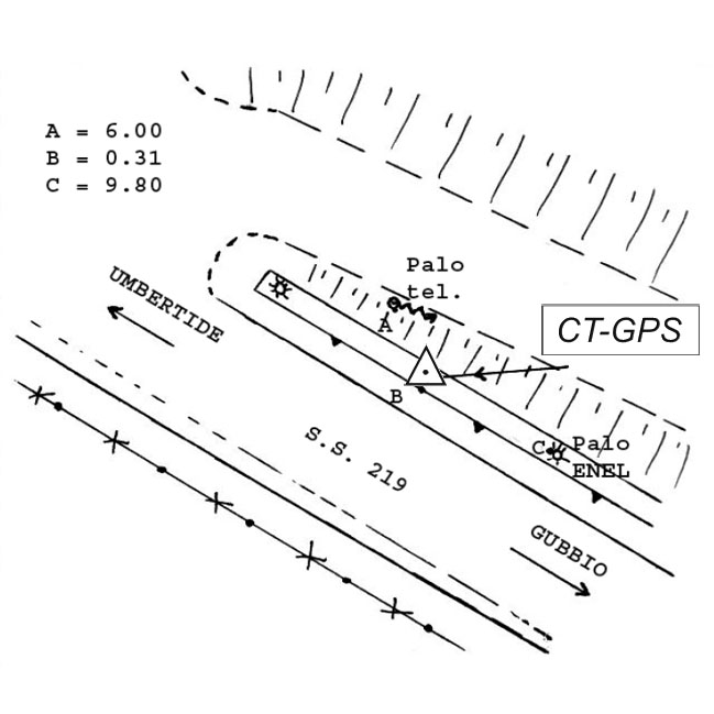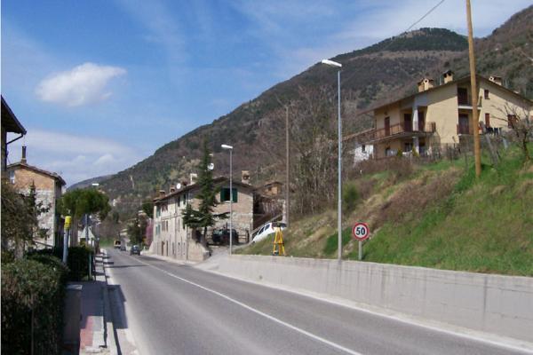Centrino metallico infisso sulla sommità lato nord, del muro di sostegno in cemento armato a monte della S.S. 219 di Gubbio e Pian d'Assino, al km 23+800, nell'abitato di Semonte.