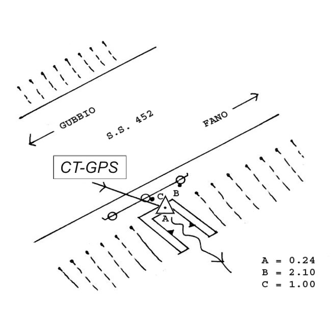 | Materializzazione | Centrino metallico infisso sullo spigolo nord del tombino in calcestruzzo a valle della S.S. 452, all'altezza del km 8+350. |
