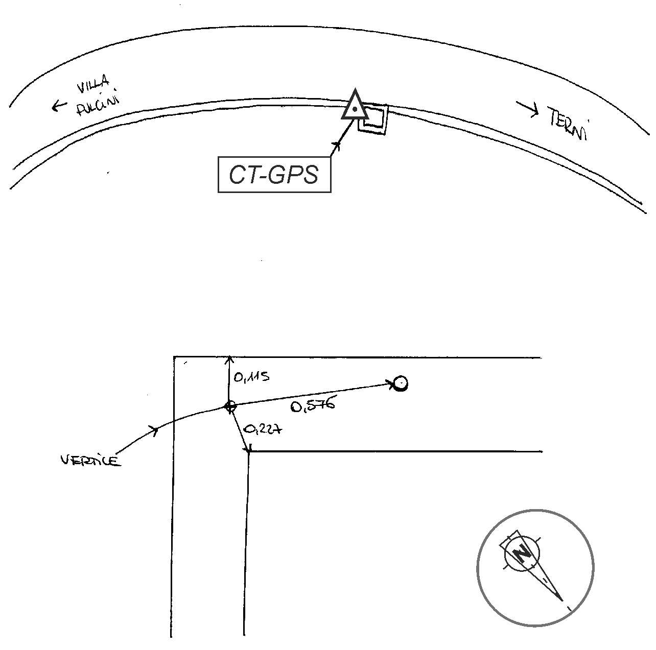 Centrino in acciaio inox del tipo "GPS" infisso sull'angolo di un pozzetto in cemento.