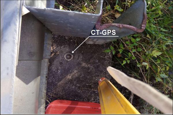 Centrino in lega con sommità semisferica su cordolo di fondazione guard-rail.