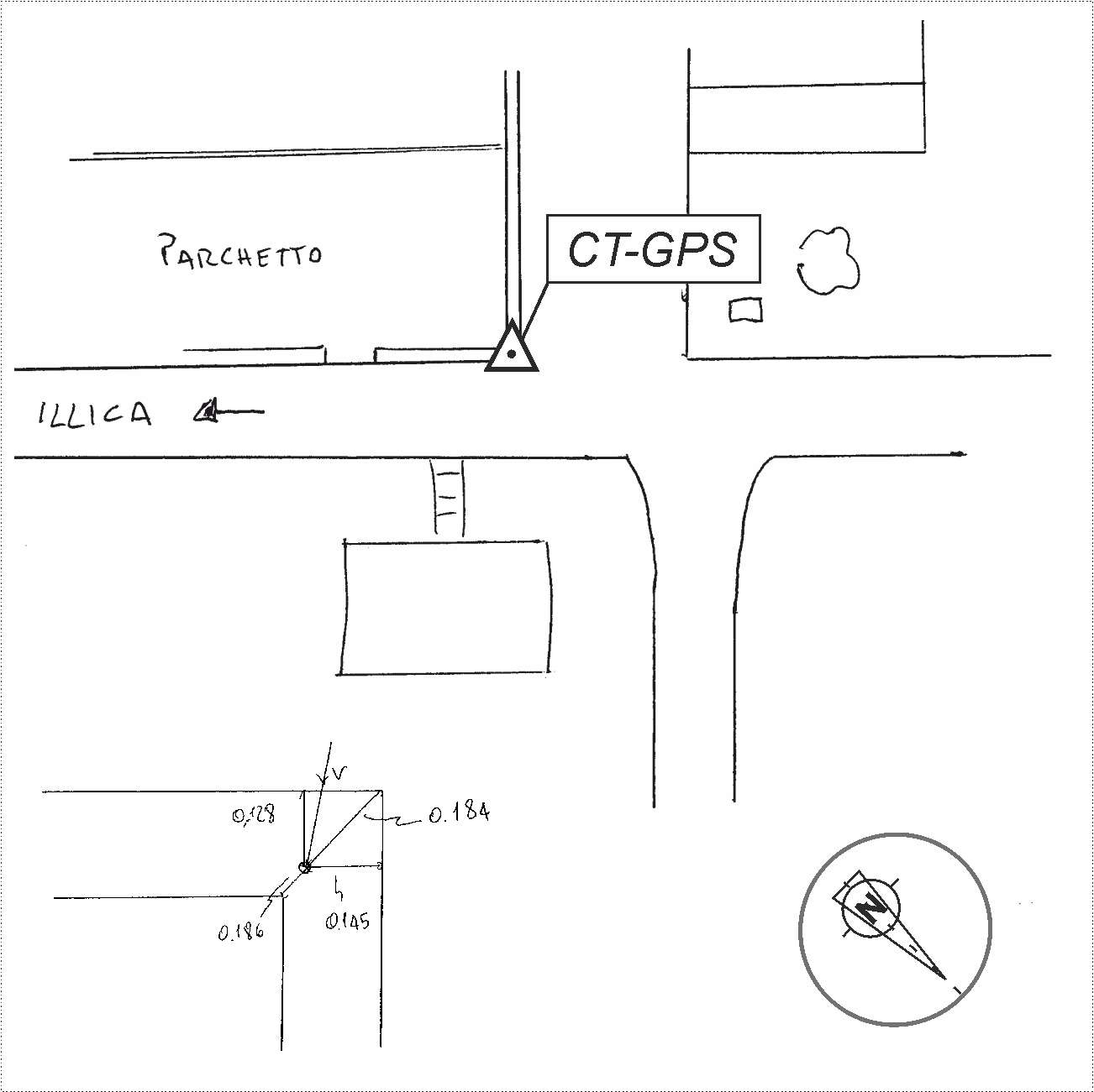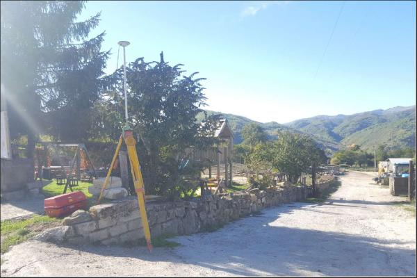 Centrino in metallo fissato sullo spigolo del muro in mattoni che delimita un parco giochi pubblico, nel paese di Illica.
