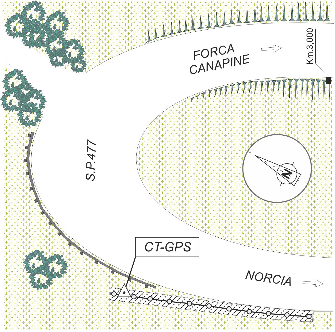 | materializzazione | Centrino in acciaio inox del tipo universale infisso sul muro di sostegno posto a valle della strada, a destra in direzione Norcia, in prossimità di un grosso tornante all'altezza del Km. 3,000. |