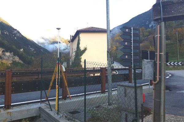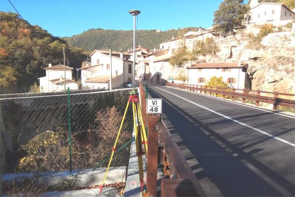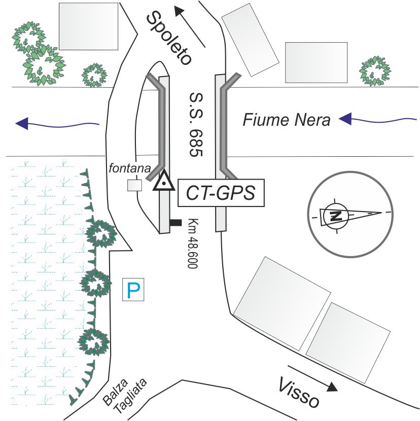 | materializzazione | Centrino in acciaio inox del tipo universale infisso nel cordolo in cemento del guard-rail, al Km. 48,600 della S.S.685, in prossimità del ponte sul fiume Nera, sulla destra direzione Visso. |