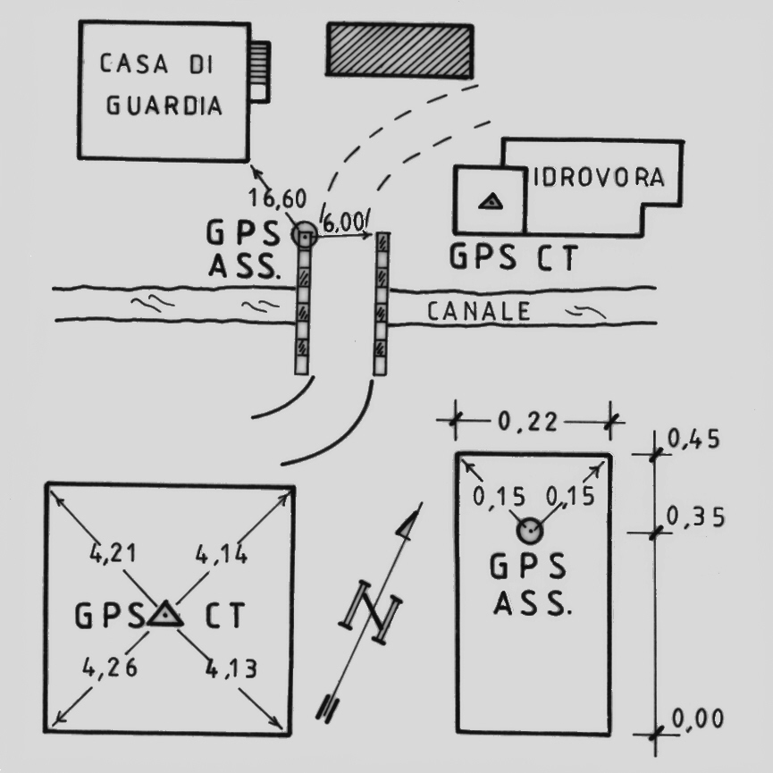 | materializzazione | Centrino del tipo "GPS A" fissato su preesistente centrino di fondo IGM del tipo di fondo ubicato sulla copertura dell'idrovora Lauro. |