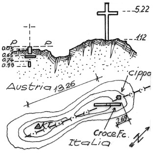| Materializzazione | Blocchetto in granito affiorante dal suolo. Riferimenti: grossa croce in larice. |