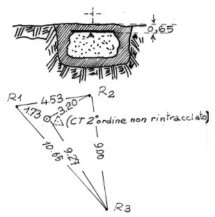 Segnale sulla cima del colle. Croce incisa su grosso masso interrato, ricoperta da una lamiera. Riferimenti: tre centrini. Il punto si trova a circa cm 50 dal Tr 013238 "Col Gentile", attualmente scomparso. (Coordinate approssimative)