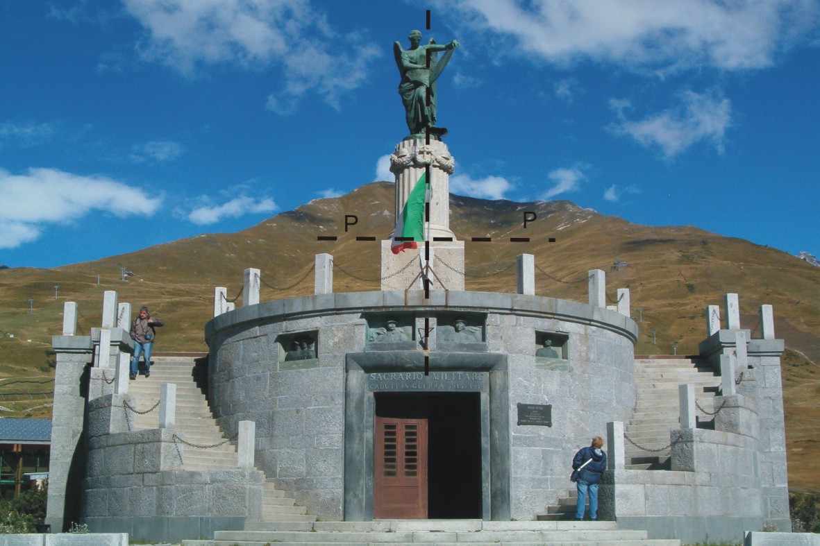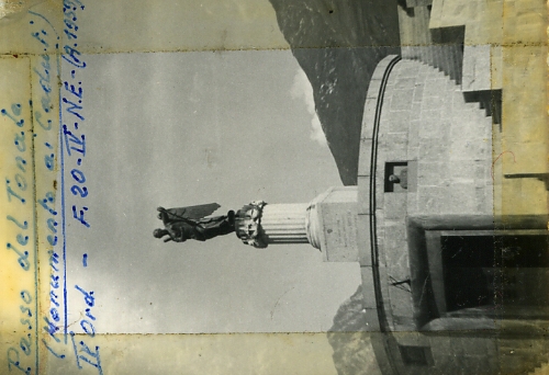 Monumento-Ossario ai Caduti sul Passo del Tonale. Asse del basamento cilindrico che sorregge la statua della Vittoria Alata.