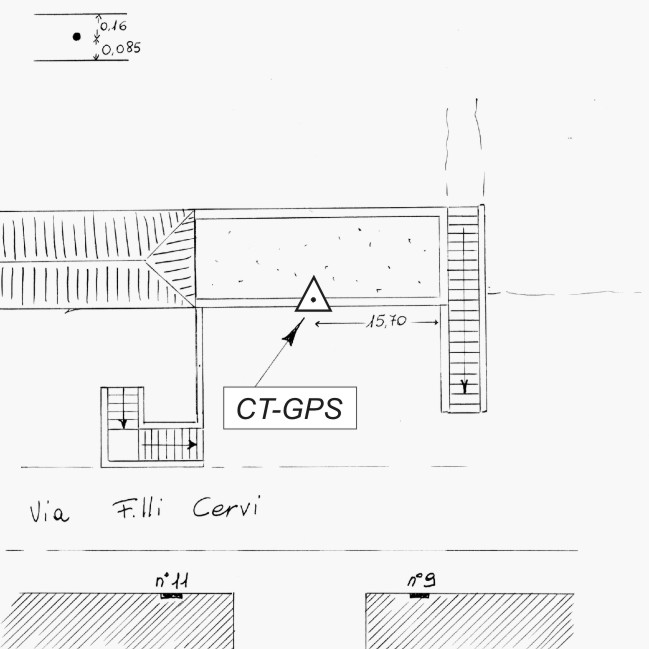| materializzazione | Centrino metallico infisso sul muro di contenimento del lastrico solare della scuola elementare della Piave, a confine del parcheggio in Via Fratelli Cervi e in prossimità della nuova zona sportiva di Castelnovo ne' Monti. |