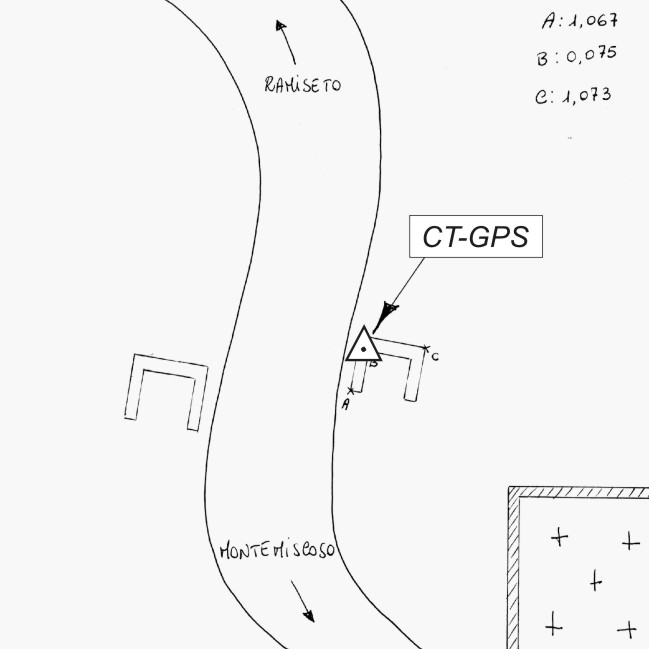 | Materializzazione | Centrino metallico infisso su manfatto caditoia posto, venendo da Ramiseto, a sinistra della strada che porta a Montemiscoso, a circa 30 metri dal cimitero. |