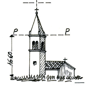 Campanile del paese. Asse geometrico del campanile.