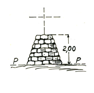 Segnale sul contrafforte che staccandosi dal Ruiter scende a Liveregne, costituito da pilastro in pietrame. Asse geometrico del pilastro.