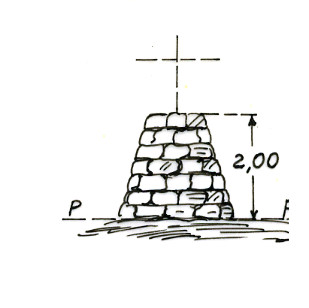 Segnale sul monte, sul limite comunale, costituito da pilastro in pietrame. Asse geometrico del pilastro.