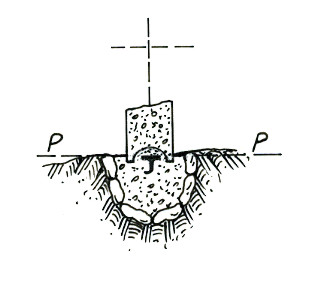 Segnale sulla cima del monte. Pilastrino semidiruto in calcestruzzo e centrino coassiale in blocco di calcestruzzo.